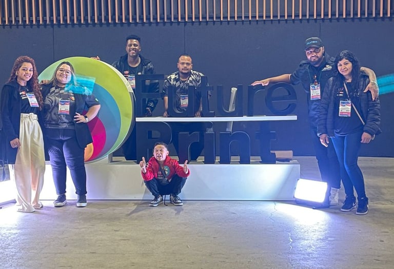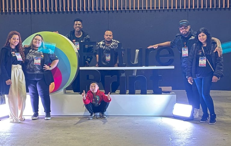 Foto registrada na Feira FuturePrint 2025, realizada no Expo Anhembi – São Paulo, onde buscamos novidades e inspirações para continuar inovando no mundo da comunicação visual.